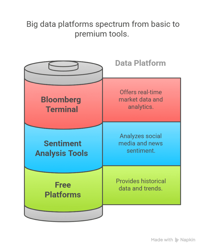 A major part of Big Data is sentiment analysis, which gauges market mood from social media and news. Platforms like Twitter, Reddit, and StockTwits are where traders and investors share opinions that can impact stock prices. For beginners, these platforms are like a raw form of Big Data.