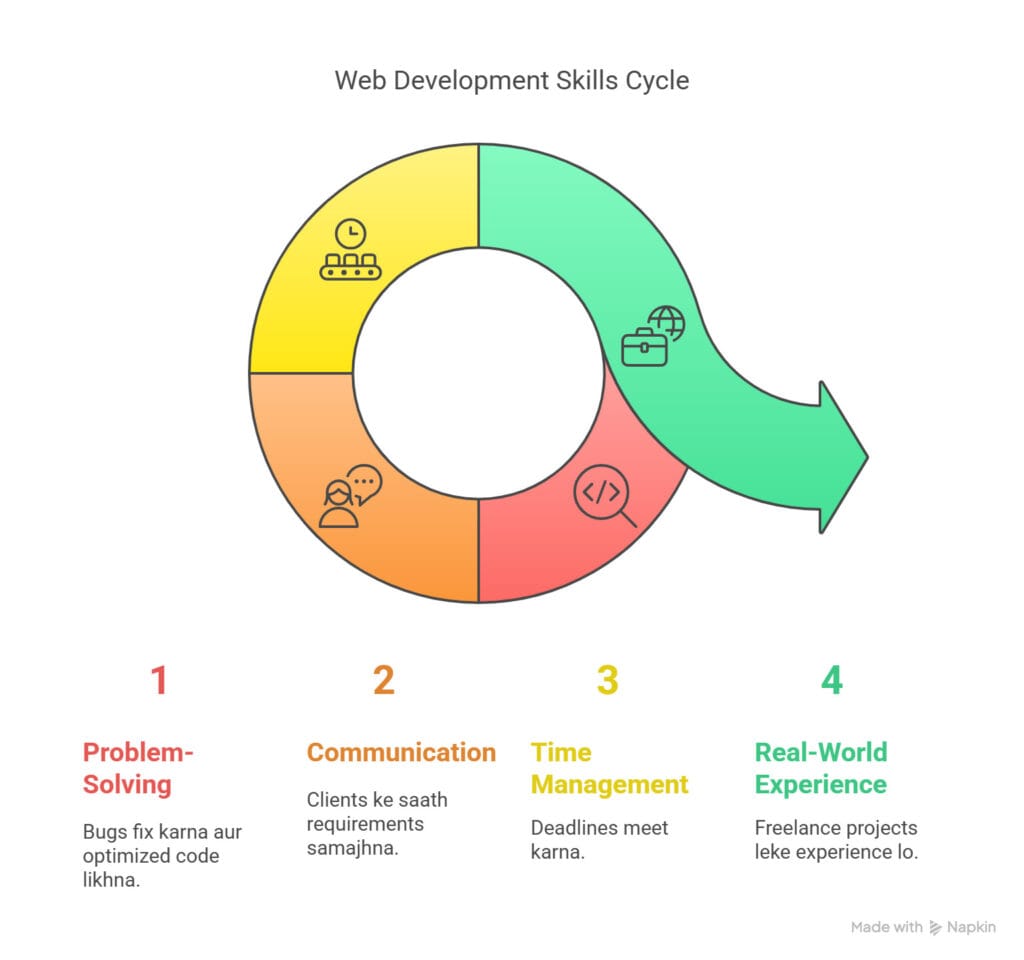 Arjun from Delhi started learning web development in his final college year. He learned HTML and CSS from freeCodeCamp and took a React course on Udemy. In 2024, he listed a gig on Fiverr and built a website for a UK-based bakery, earning $800. Today, he earns ₹2 lakh monthly working part-time.